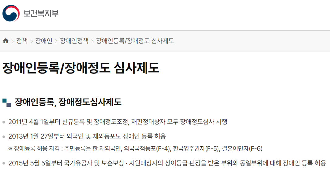 더 자세한 내용은 보건복지부 고시 '장애 정도 판정기준'을 참고하세요!